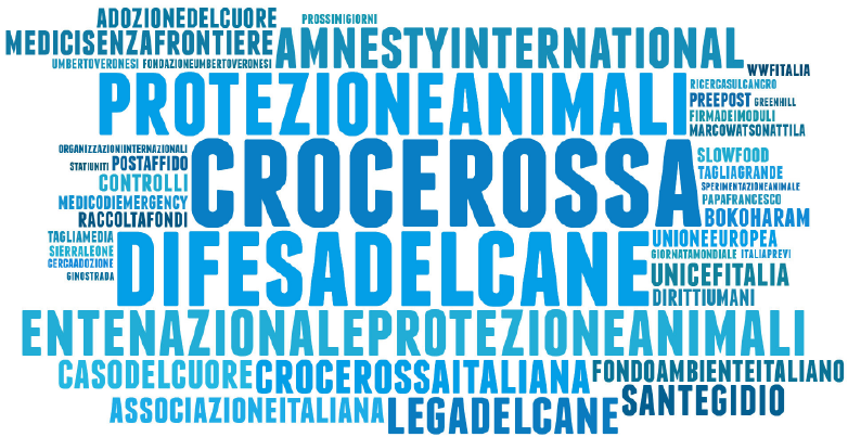 Le organizzazioni considerate sono state selezionate da un panel di oltre 200 sulla base della numerosità dei fan e follower su Facebook e Twitter.